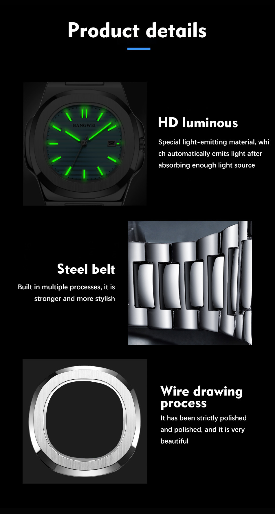Mens Stylish Luminous Water-Resistant Watch With A Steel Band